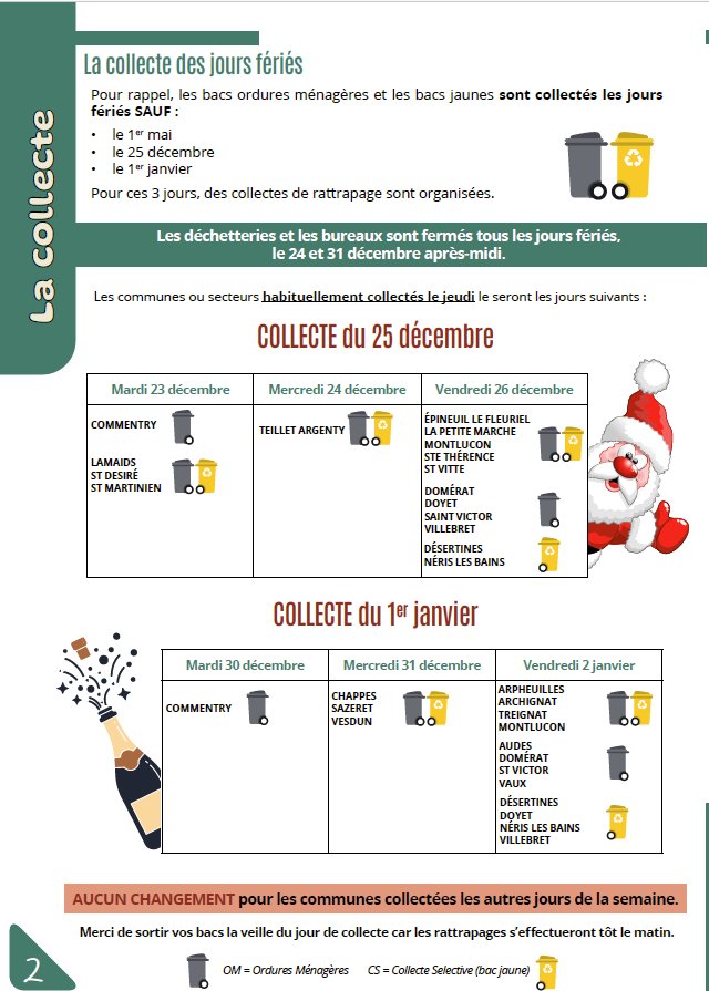 Le SICTOM vous informe que la collecte des ordures ménagères n'aura pas lieu le 25 décembre. Elle est reportée au 26 décembre.